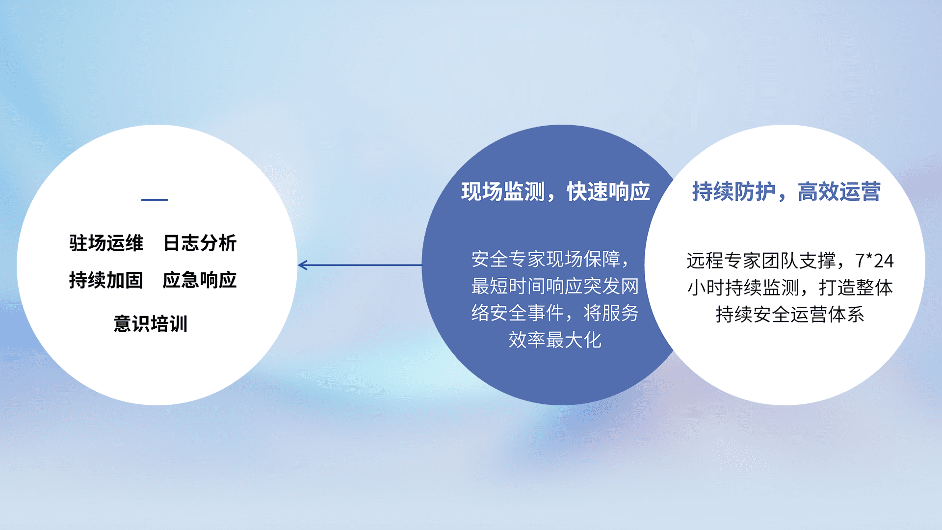 7X24小时持续监测安全事件,保持安全策略有效性,降低资产脆弱性风险,,精准拦截黑客攻击,,,减少被黑客利用的机会,,,第一时间遏制,,降低损失。。